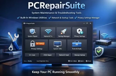 Whether you're facing corrupted system files, broken Windows updates, or network issues, this modern utility empowers you to take control and fix it fast. No bulky installations. No background bloat. Windows Repair Suite is optimized for speed, minimal resource usage, and zero learning curve.