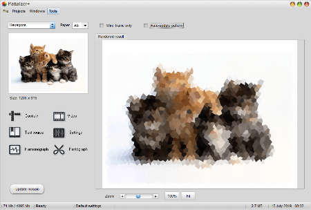 Pattaizer is a software painting tool. It does not replace the skill of many people to draw, paintbrush, sketch and paint. It is a tool for people who like to do it different, and create their own colourful painting. When your personal piece of art has amazed your family and friends when they ask 'is it real?' then you are satisfied. That's all it takes: amaze and be inspired by the possibilities of this simple application.
