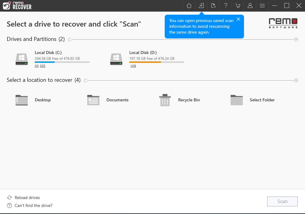 Remo Recover (Windows) is the best solution to recover your deleted or lost data in an easy way. Data lost due to emptying Recycle Bin, formatting, corrupt partitions, accidental deletion using Shift + Delete keys or due to any other reason will be recovered. With its friendly interface, even a non-tech savvy user can recover data without any hindrances.