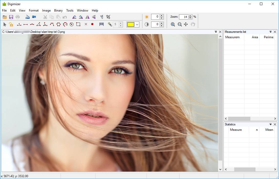 Digimizer is an easy-to-use and flexible image analysis software package that allows precise manual measurements as well as automatic object detection with measurements of object characteristics. Pictures may be X-rays, micrographs, etc. Supported file formats are JPG, GIF, TIFF, BMP, PNG, WMF, EMF and DICOM files. Images can be rotated, flipped or straightened. Image brightness and contrast can be adjusted. Several filters can be applied.
