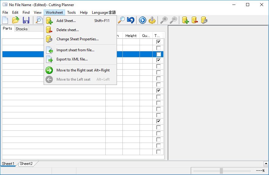 Calculate highly efficient cutting layout by panel saw, running saw and shirring. Used in furniture manufacturing, steel plate and sheet metal processing, etc.
