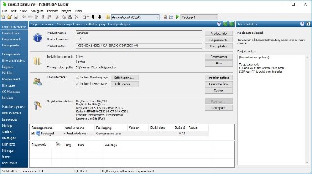 The program has a user friendly interface in which you can create a new project (mobile or standard installer) by selecting the language and giving it a name. In the "Product Information" area you can rename your product, write the publisher name and copyright notice, as well as generate a GUID. Plus, you can attach a "version info" file and add-on/update, as well as input the main product name.