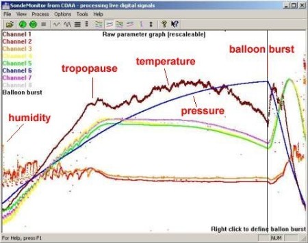 SondeMonitor decodes the messages from both analogue (6-tone) radiosondes (Vaisala RS80 series) and digital radiosondes (Vaisala RS92SGP and RS92AGP series) using a simple UHF scanner receiver and the soundcard of a PC or laptop.
