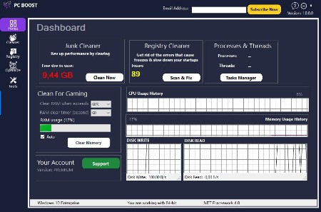 Pc Boost Pro has amazing in build feature, which helps to remove all the unwanted and junk files from your pc. That gives you extra space in your system with cleaning disk.