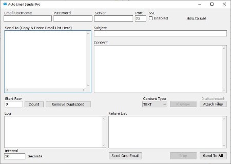 Auto Email Sender supports both HTML and plain text email formats, and also supports adding multiple attachments. In addition to these, it also has a log recording window, failed sending email list window, and an SSL encryption function.