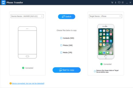 Switch files between iPhone and Android phone is a difficult task, Phone Transfer can help you do this with simple clicks.