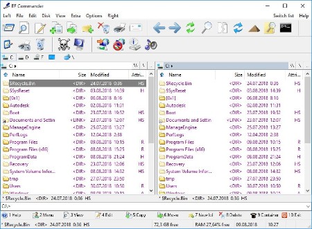 EF Commander is a complex and multi-featured file manager that a wide range of users, from beginners to professionals, will find easy to use. It is the result of many requests received by the author. The first version was written in 1994, under the OS/2 operating system using Presentation Manager, as a personal replacement for the old DOS program Norton Commander. In 1996 it was ported to the 32-bit Microsoft Windows operating system.