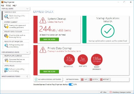 Express test analyzes folders, documents, images, videos, music, and other files and displays the space occupied on the disks.