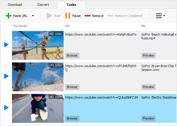 Just copy and paste a video URL to start a download. You can also directly drag and drop video link/URL from your browser to the Drop Box to start a download.