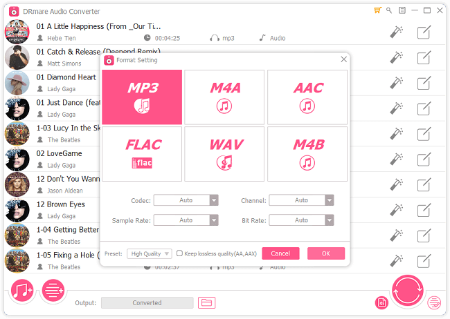 With the easy-to-use interface, the DRmare Audio Converter for Windows can convert kinds of audio files to other commonly used tracks at 30X super faster speed. In other words, an hour-long audio file is expected to be converted in just minutes. Besides, DRmare Audio Converter boasts a perfect balance of conversion speed and quality. You are guaranteed to get excellent output audio with CD quality no matter you are converting M4P streams, online audiobooks, or plain audios.