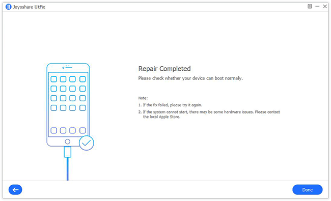 With the help of this hassle-free iOS repair tool, you don't have to worry about the risk of data loss at all. Joyoshare UltFix for Windows is capable of fixing almost all system problems under standard mode without data loss, like iPhone won't turn on, stuck in recovery mode, black screen, etc. Only a few particularly serious system problems, iPhone passcode forgotten involved, have to be repaired under advanced mode, which will restore iDevice to factory settings.